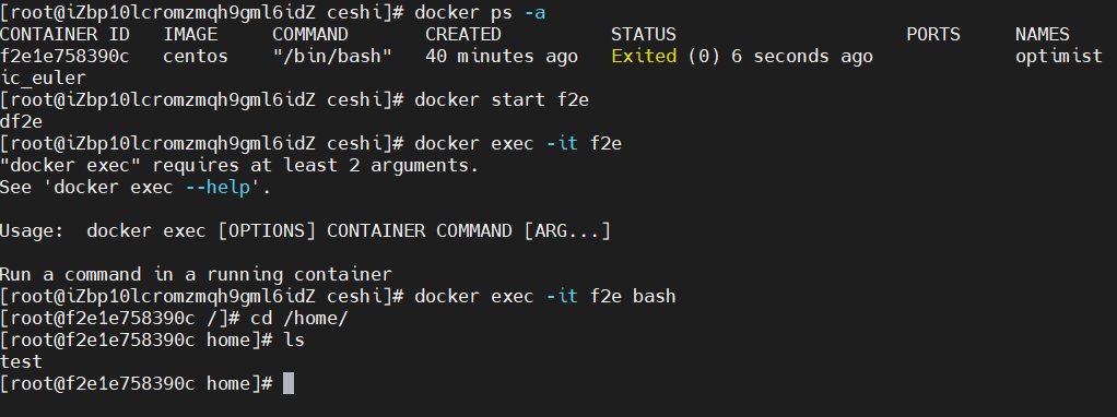 docker run -it -v /home/ceshi:/home centos /bin/bash