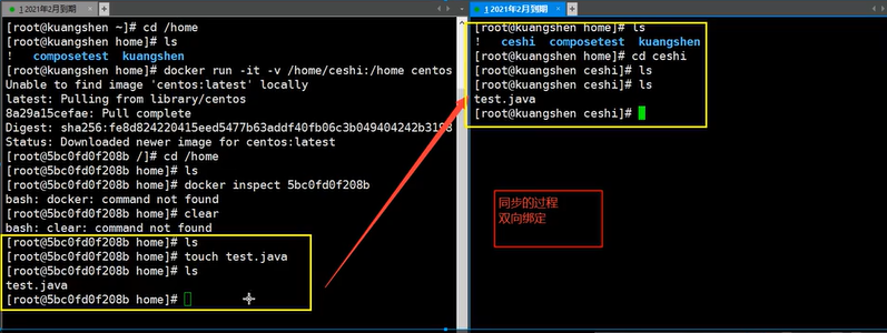 启动容器,进入目录会看到本地创建的文件同步到容器内