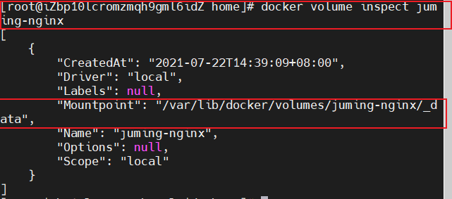 [root@iZbp10lcromzmqh9gml6idZ home]# docker volume ls