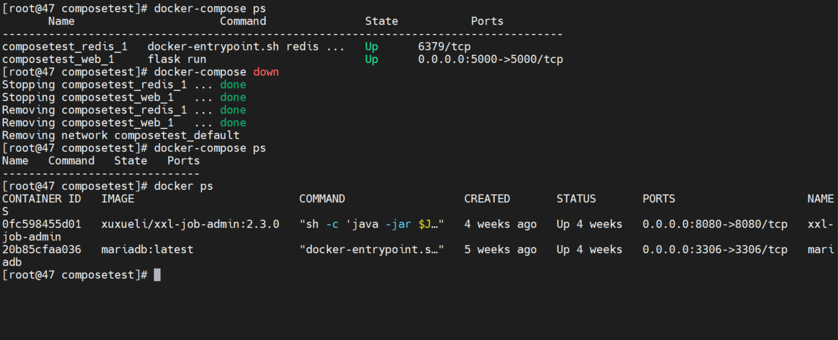 注意:所有compose命令需要在docker-compose.yml配置文件所在目录进行