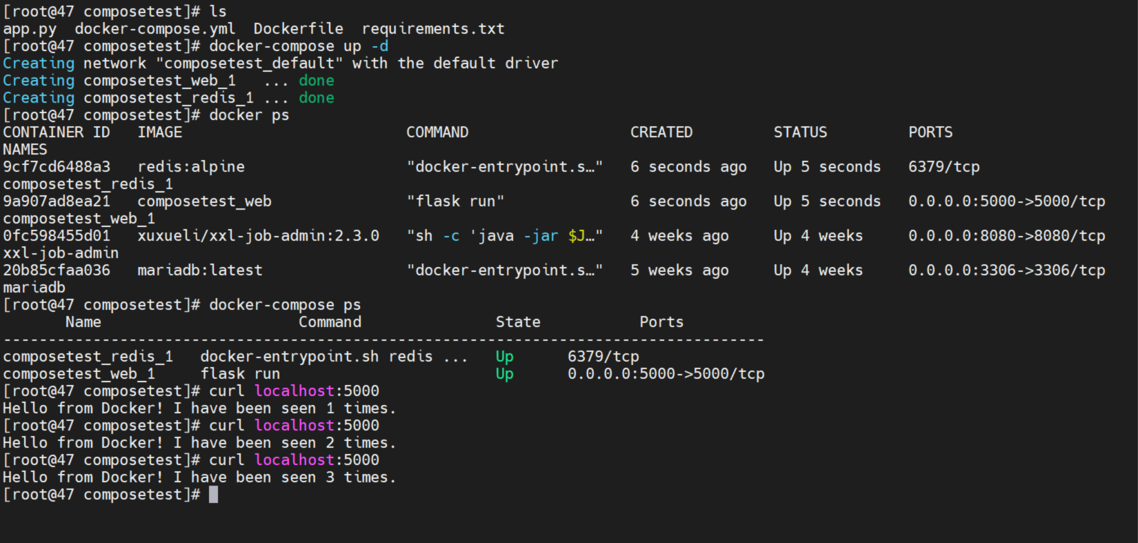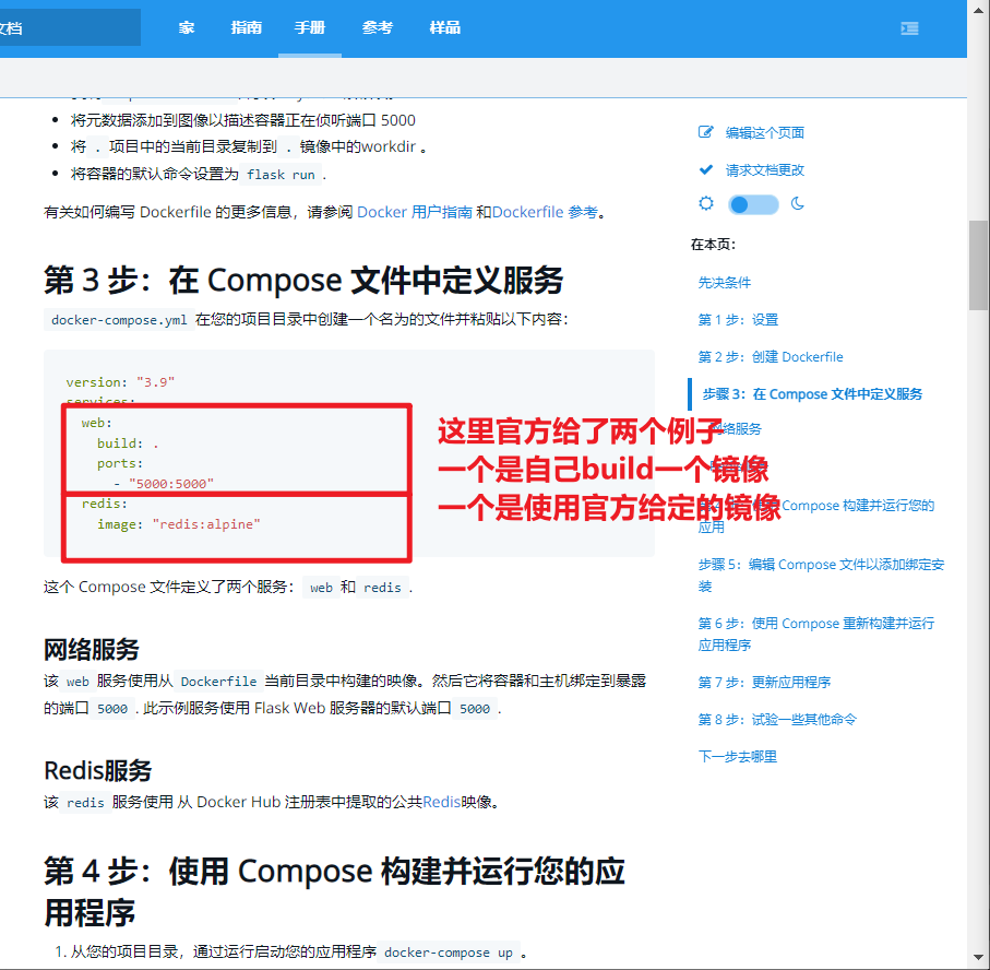 CMD ["flask", "run"]3、在Compose文件中定义服务