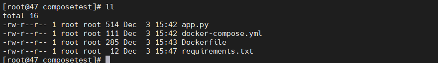 到现在为止,一个python应用程序,一个docker-compose配置文件,一个Dockerfile文件,一个依赖目录