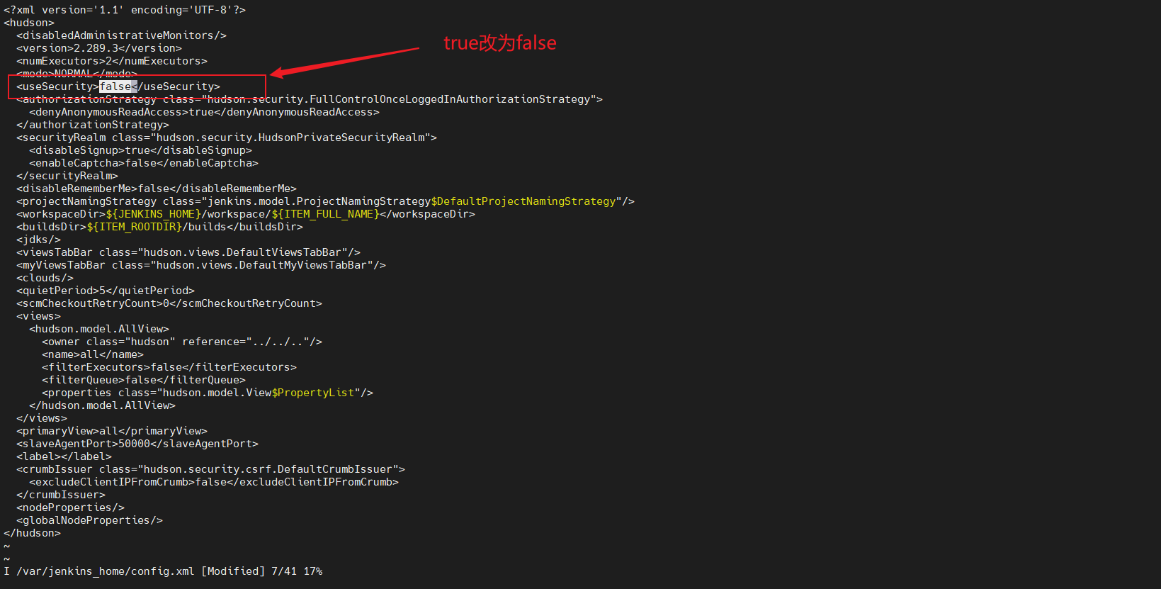 vi /var/jenkins_home/config.xml执行如下操作可以无密码登录