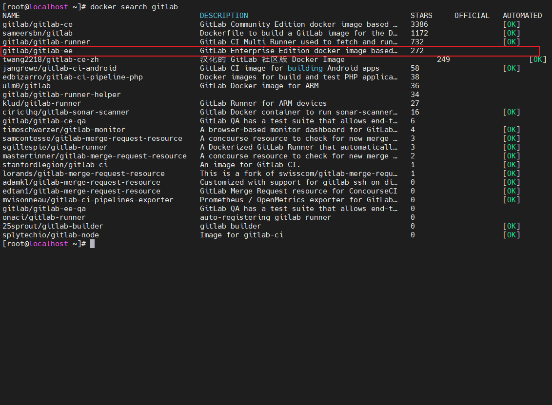 docker search gitlab我是用的时ee版本,最上面还有个ce版