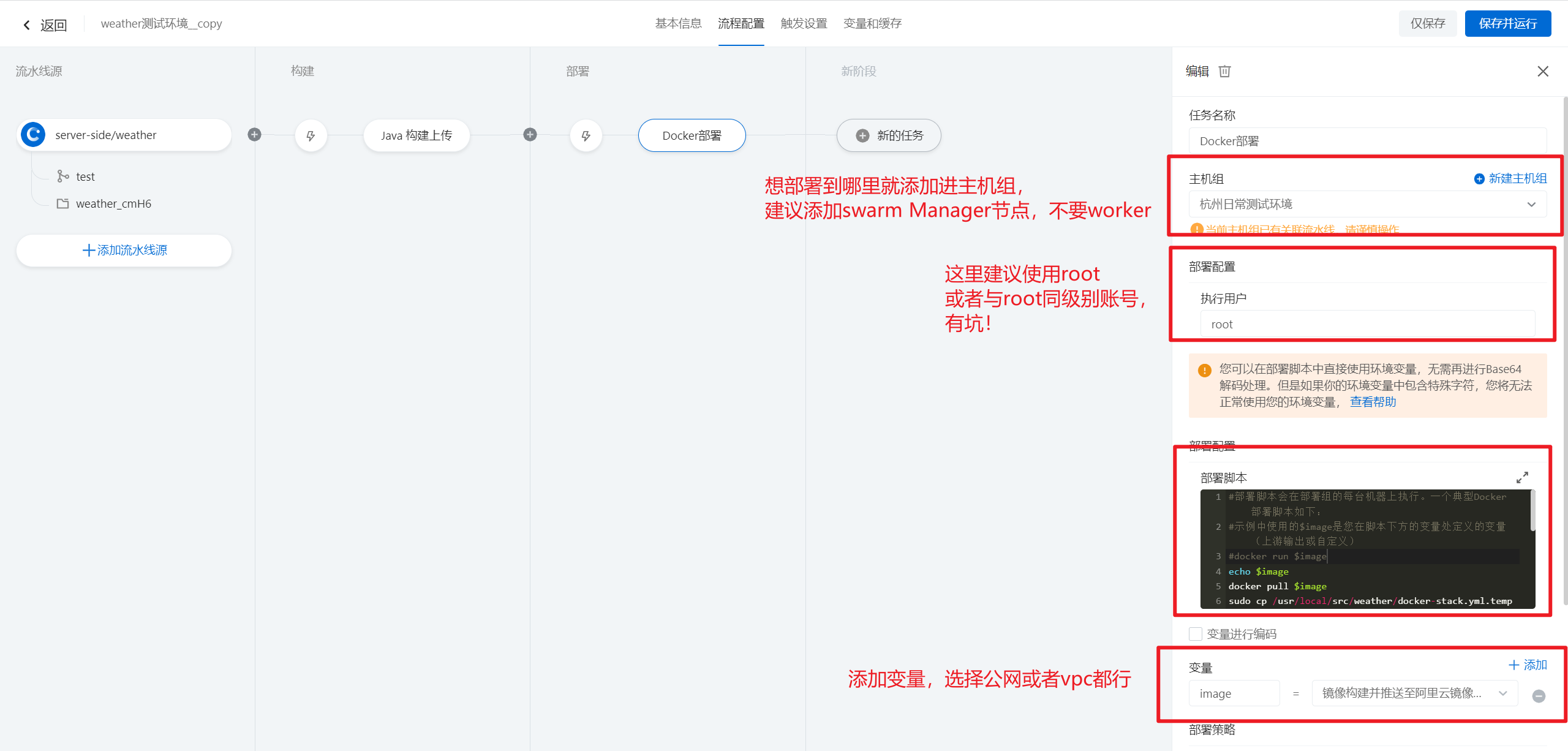 例如:当前的weather文件夹里所有文件都是root或者其它用户userA新建、编辑;此时你使用与这些文件的作者不同的账号userB进行流水线Docker部署,会导致权限不足失败;