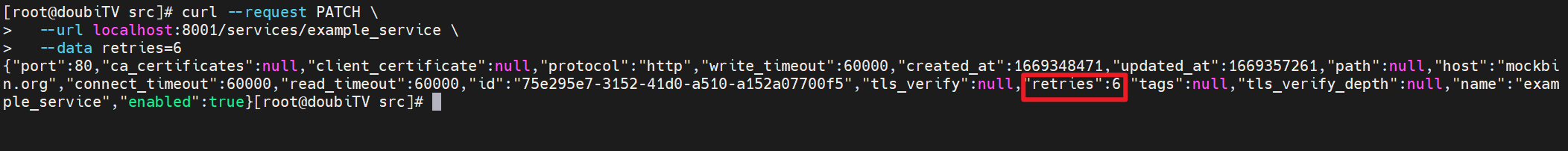 可以通过向服务 URL 发送PATCH 请求来动态更新现有服务配置。更改某service重试次数,请发送此PATCH请求: