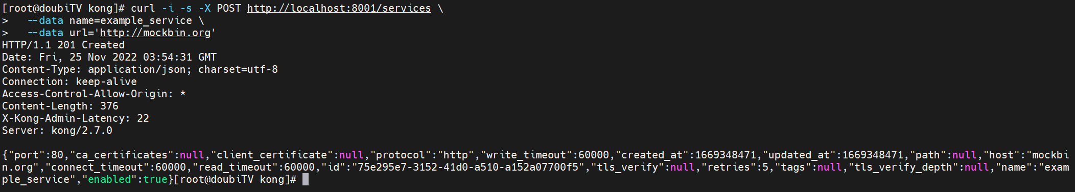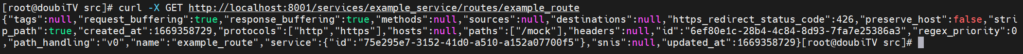 curl -X GET http://localhost:8001/services/example_service另外,当你使用去掉url中{service name or id}时,可以看到services列表;